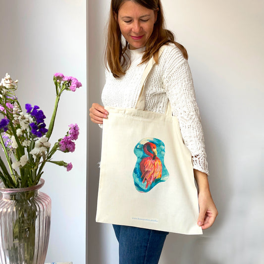 Printed Cotton Bag – Artistic & Sustainable Tote Bag (Flamingo, Bee, VLC)